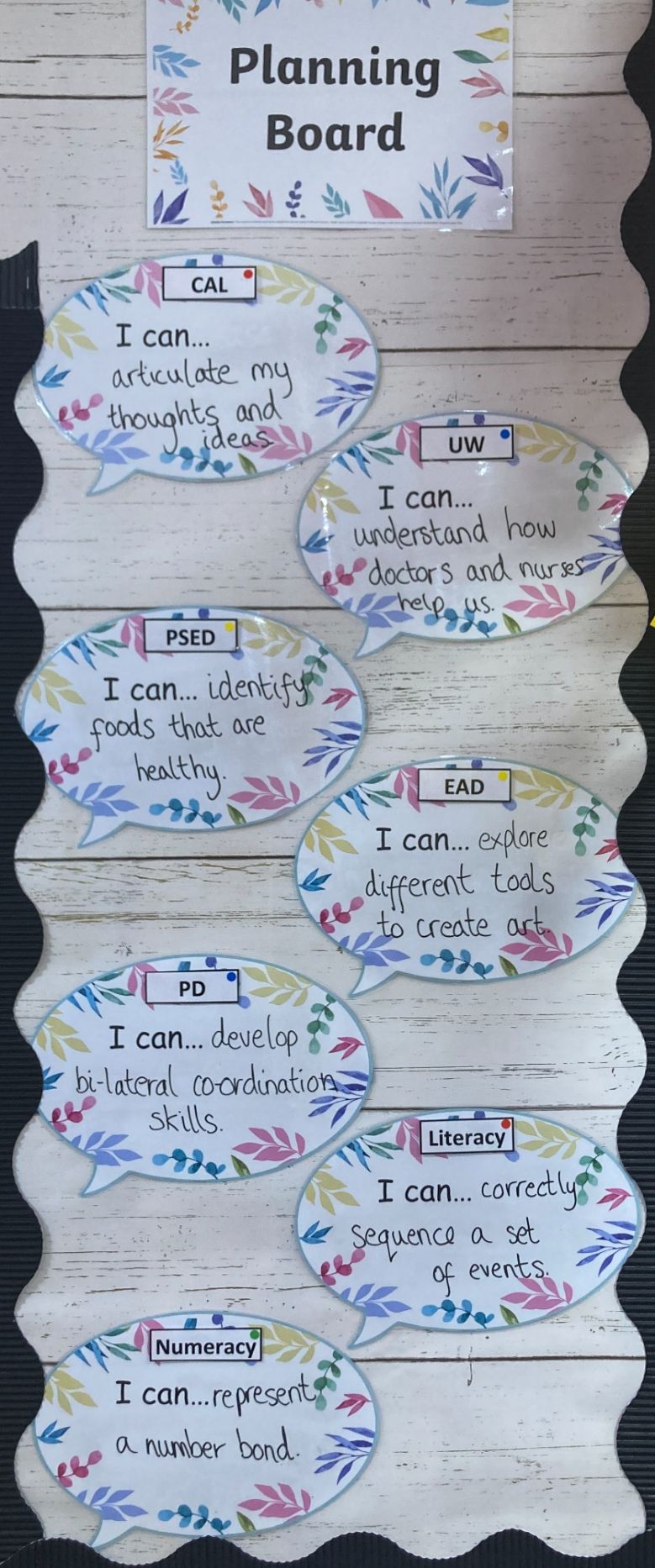 All children will have access to a small-world area, writing areas, an investigation area, a fine-motor area, a reading area, and role play, as well as access to daily literacy and numeracy activities. The children also have opportunities to access the interactive whiteboard.